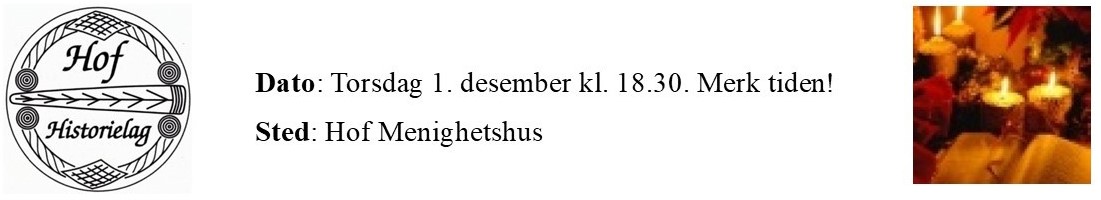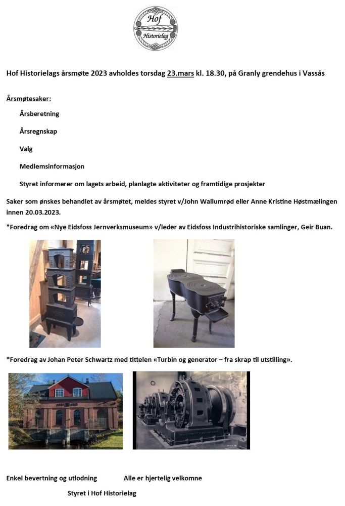Hof Historielags årsmøte 2024 avholdes torsdag 14.mars kl. 18.30, på Menighetshuset i Hof