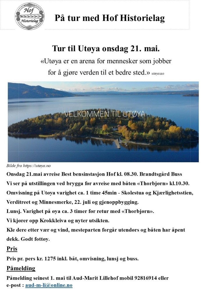 PÅMINNELSE!!! Turen til Utøya er avhengig av at flere melder seg på. Husk at fristen for å melde seg på er 1. mai.