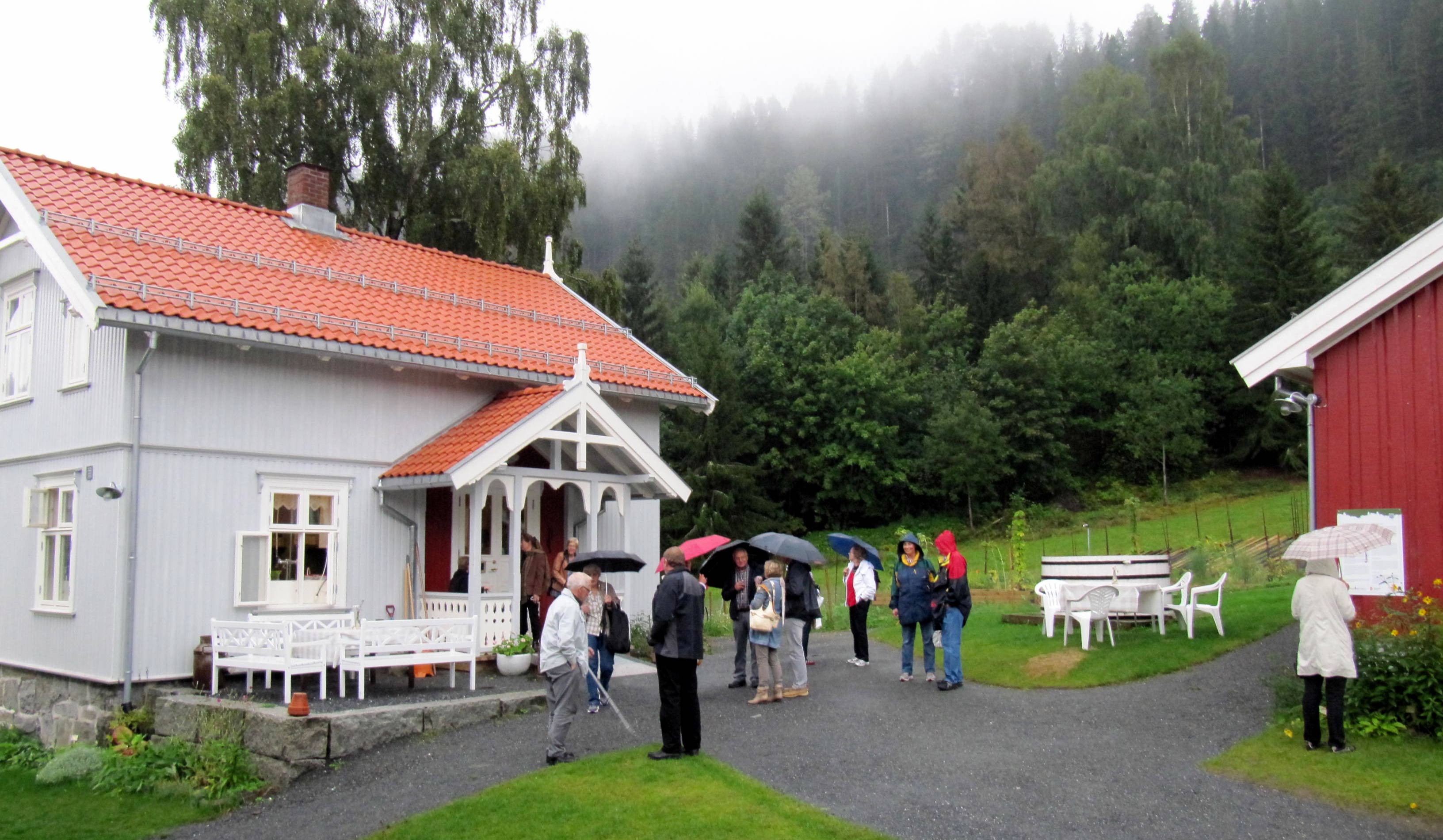Deretter gikk bussen til Nedre Eiker og Herman Wildenveys hjem Portåsen som har blitt til et flott sted for kultur- og naturopplevelser. Wildenvey ble født i 1885 på en plass i nærheten, og bodde i Portåsen i sine barne- og ungdomsår. Han glemte aldri Portåsen og var mye her i sitt voksne liv. Vi fikk god traktering med pai og kaffe på låven. Vår hyggelige vert Ole Hammerborg leste flere fine dikt av Wildenvey og fortalte fra dikterens liv og historie, og om Portåsen som kulturarena.