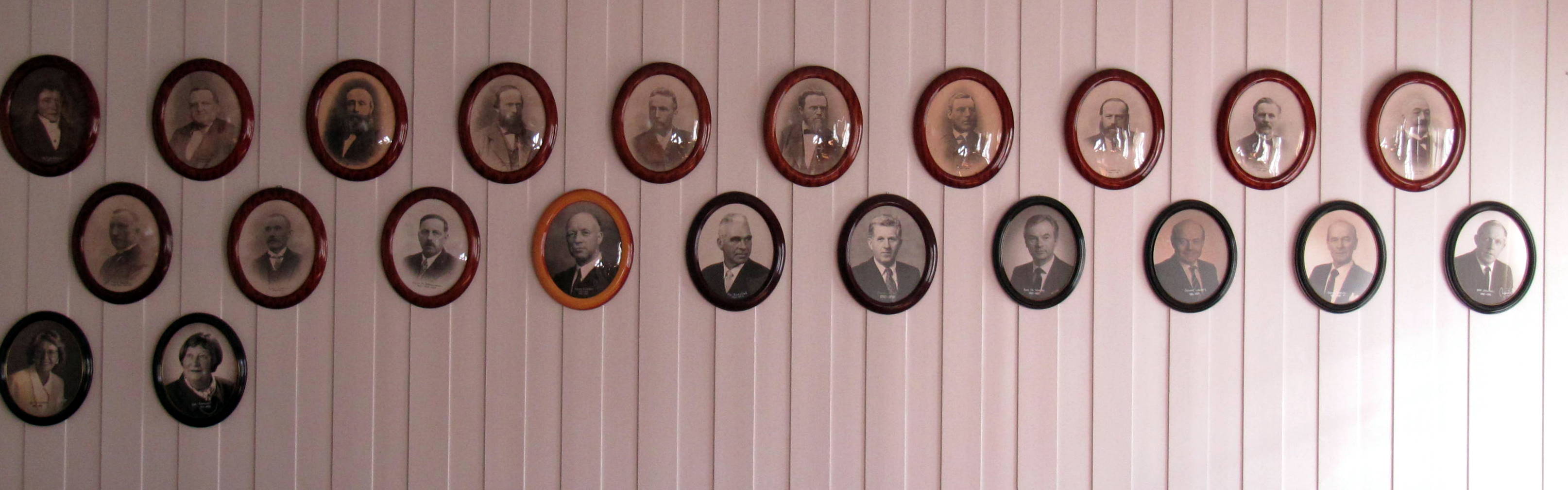 Derfor bestemte styret å etterlyse gamle originale rammer. Rammene som henger på veggen er ovale og ca format er: 31 • 37 cm. De eldste er ekstra fine med glass som er litt buede i formen. Her ser en at det er brukt flere forskjellige rammer: