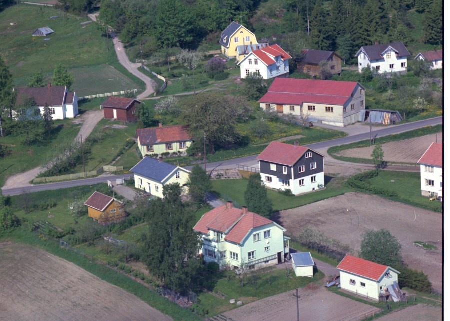 Nr. 150771. FW, 1965. På venstre side: bedehuset, Skansen, – , Utheim, På høyre side: Skogvang, Fjellheim, Hvål trevare, Tunbakken, Bjerke Lik Laster inn...