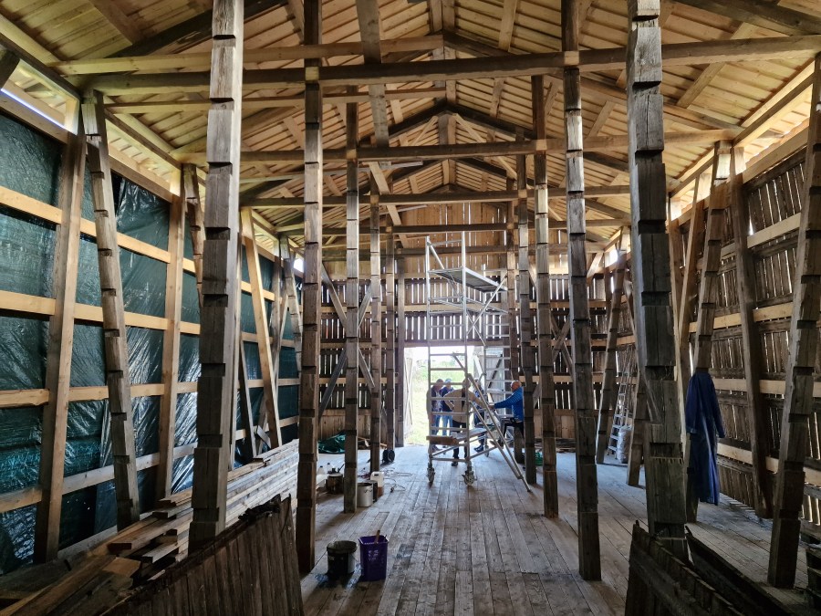 Våren 2024 var alt klart til å reise bygget. To innleide, profesjonelle tømrere, John Olafsen og Petter Nordseth, har arbeidet på bygget i ca. 400 timer. I tillegg har flere frivillige hjulpet til som medhjelpere og tilretteleggere for tømrerne. Tidligere restaurerte bygningsdeler er satt sammen i moduler og elementer. Disse er reist manuelt, kun takstoler er montert ved hjelp av innleid mobilkran. Planen for sesongen 2024 var å ferdigstille reisverk og legging av tak med undertak og tett duk. Imidlertid har en også greid å ferdigstille to vegger med lemmer ferdig montert.