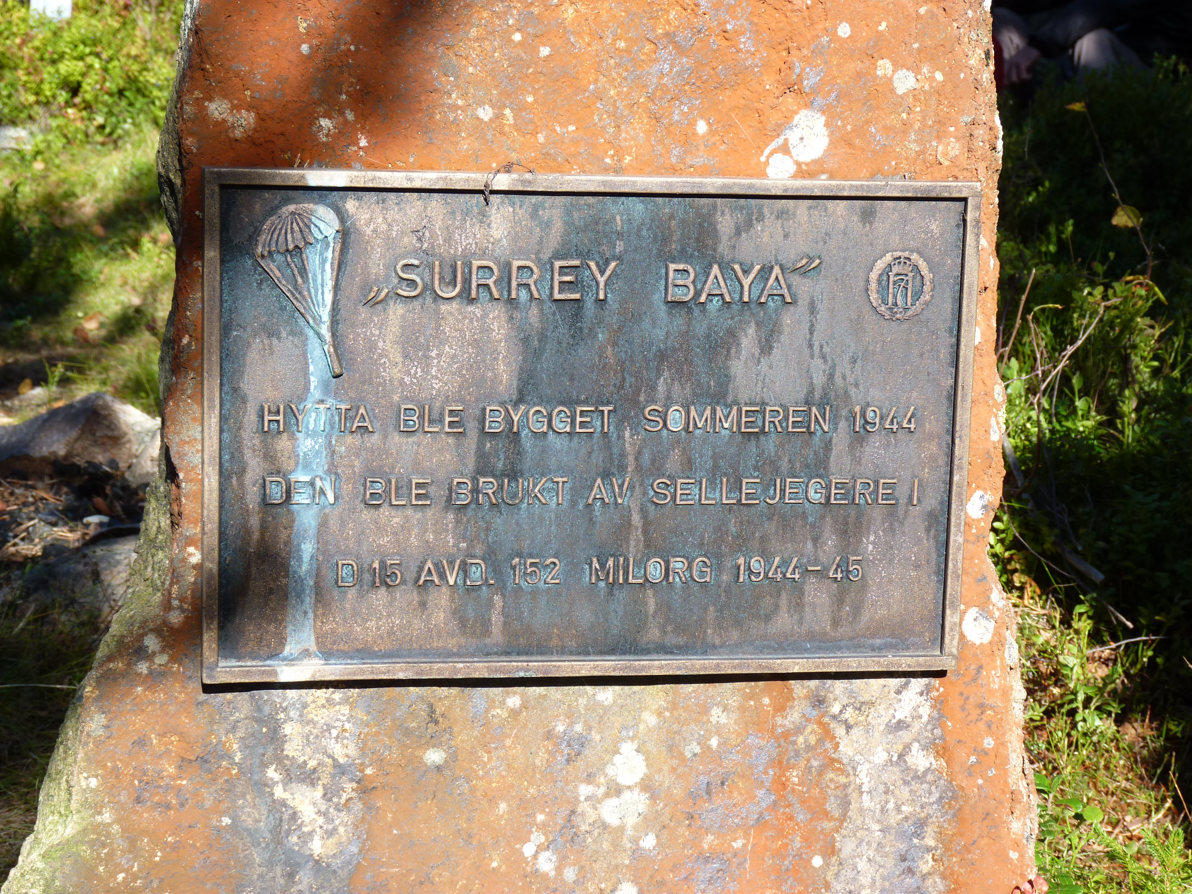 og krigsminnet «Surrey Baya» . Stedet ligger mellom Mjøvann og Øksne og var den første hytta som ble bygget av de som fra 1944 og fram til krigens slutt holdt til i området. Opprinnelsen til navnet på hytta er det flere som har teorier om. Noen mener at den ble oppkalt etter et sted i Indonesia med samme navn, andre mener å vite at navnet kommer fra et skip, et tidligere hvalkokeri, Fl/F «Sourabaya» eid av Tønsbergrederiet Salvesen. Båten ble torpedert og senket av en tysk ubåt på reise fra New York til Glasgow i 1942, og 77 mennesker omkom.