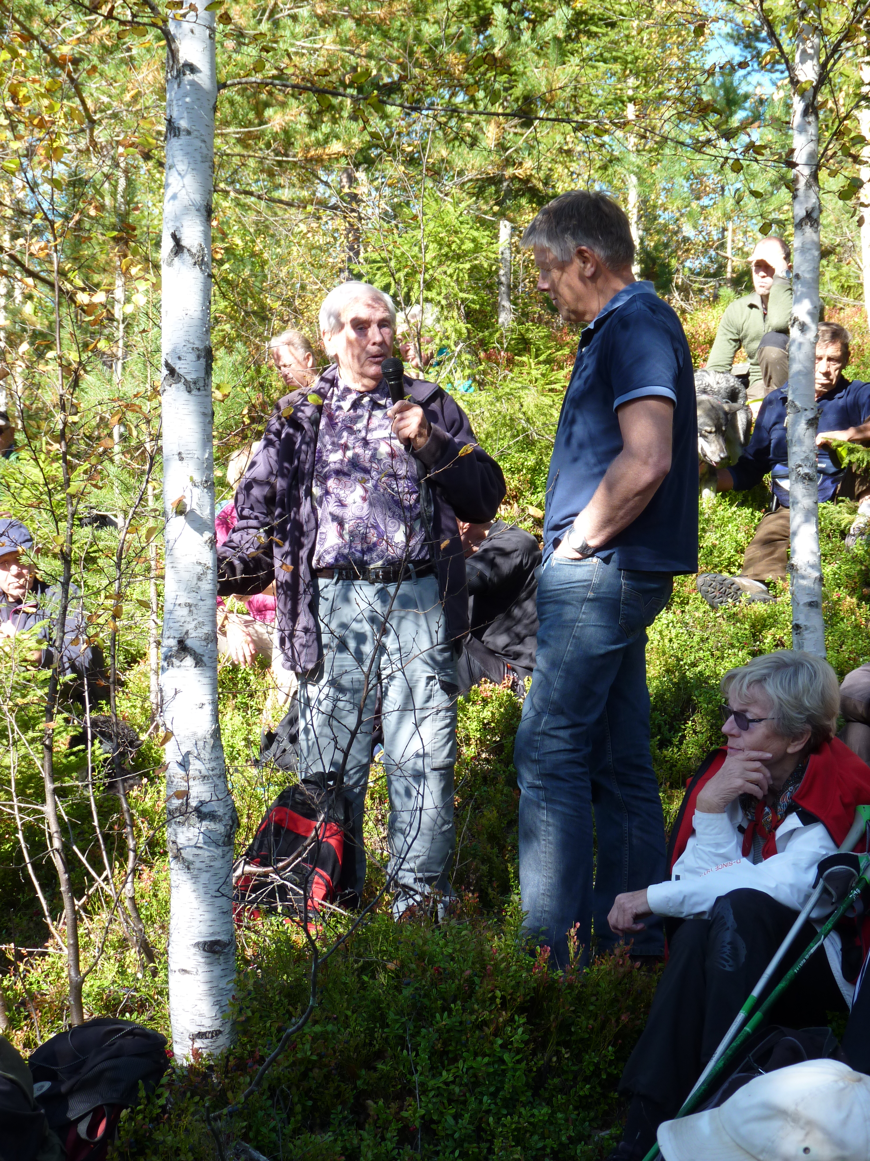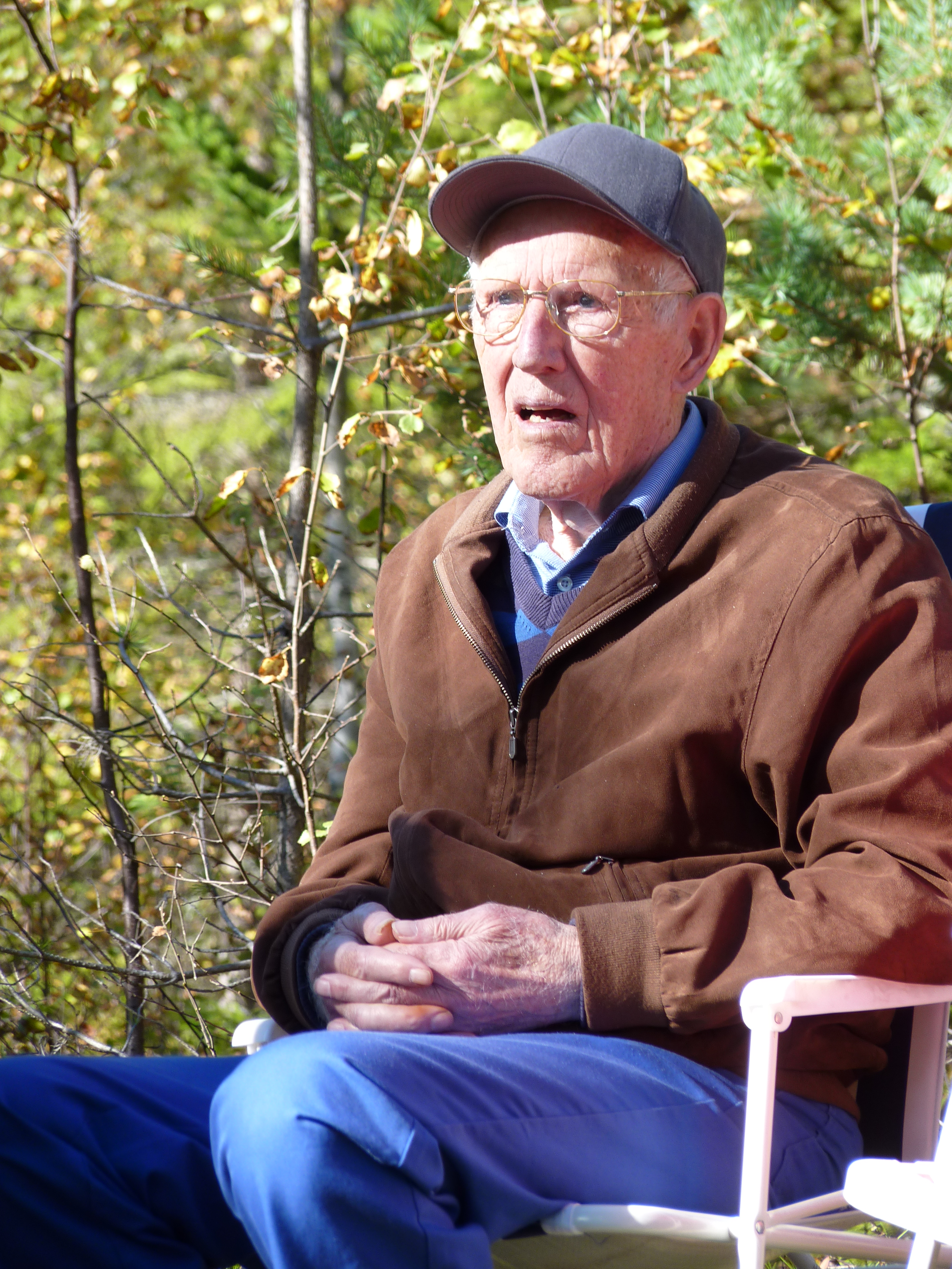 Olav Sandlund ble behørig takket for sitt bidrag med å fortelle og levendegjøre beretningen om «gutta på skauen» i Hof. En samtale mellom Sandlund og de spesielt inviterte, Leif Klausen og Olav Nordstrøm var en fin avslutning på markeringen ved minnesmerket. De ble begge overrakt et Eidsfosskrus fra Hof Historielag.