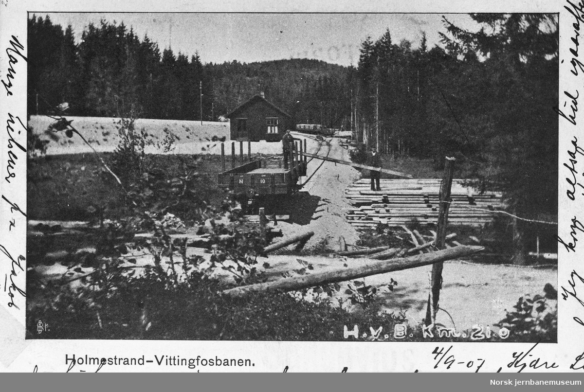 Et annet minne var Haslestad stasjon, sentralt plassert på området og en viktig del av det dagliglivet på området. Ordet ble gitt til jernbanehistoriker Håkon Westby som fortalte om Holmestrand-Hvittingfossbanen. Denne jernbanestrekningen hadde stor betydning for fremveksten av sagbruket. Han viste fram gamle bilder fra traséen. Egil Kvilhaug mente å kunne kjenne igjen en person fra et av bildene. Banen fra Hvittingfoss til Holmestrand var i drift fra 1902 til 1938. Banen ble i sin tid finansiert ved salg av aksjebrev. Han fortalte også detaljert om den postale historien. Postgangen den gang var langt raskere og hyppigere enn i dag, og folk i området kunne faktisk både sende og få post tilbake samme dag, noe som ikke er vanlig i vår tid.