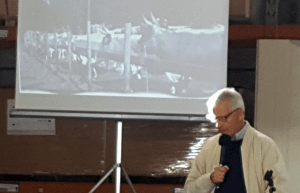 Han ble godt assistert av Stein Kvarme som viste bilder av de ulike minnene på storskjerm. Arne Grønseth fortalte at han alltid hadde hatt et nært forhold til Haslestad og Haslestadbanen. Store forandringer har funnet sted siden han vokste opp og hadde sin skolevei over området. Han viktigste kilder til den historiske fortellingen var en beretning om Haslestad Bruk av Olav Lindseth, Hof bygdebok, Hof-Minne, egen hukommelse og andres beretninger.